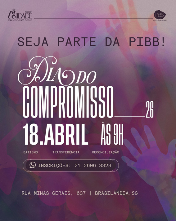 E se você deseja fazer parte da família PIBB, seja se reconciliando, se batizando ou assumindo um compromisso com Deus, pode realizar sua inscrição diretamente na secretaria.